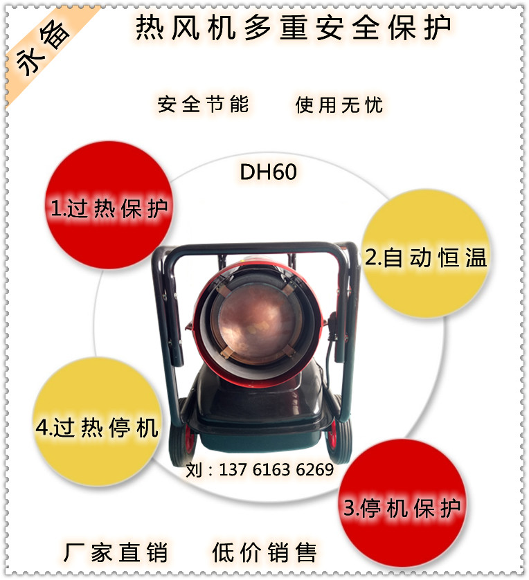 五、宴席厅、移动餐桌。有不少酒店宴席厅在用燃油热风机,冬季移动餐桌用热风机取暖的比较多,移动餐桌用空调取暖不方便,而我们移动小体积的燃油热风机很方便,既不占空间而且随用随开,非常的省事。