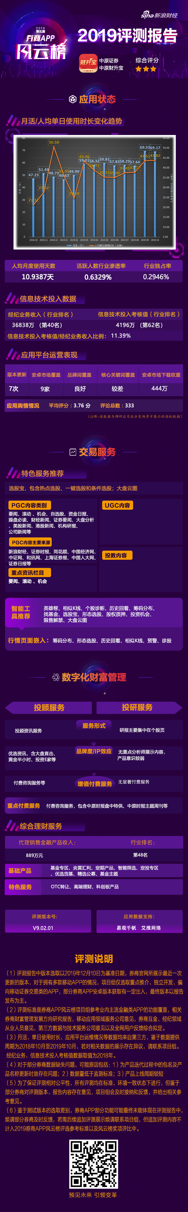 本期,新浪财经券商APP风云榜评测目标为中原证券APP中原财升宝,综合评分为3星。中原财升宝选股宝服务相对突出,包含热点选股、一键选股和条件选股;投教、UGC内容缺失;投顾服务相对单一,仅包括优选资讯,含大盘直击、黄金半小时、投资E家等,研报服务表现一般。